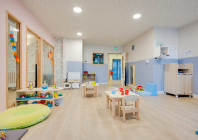 La crèche Les Aventuriers de Neuilly-Villiers, met en place un projet pédagogique qui favorise le développement moteur. La motricité libre permet aux enfants de développer leur autonomie. De plus, les ateliers sont animés dans la bienveillance et encouragent l’éveil artistique, créatif et émotionnel. Un espace Snoezelen est a disposition des enfants, leur offrant un moment de détente dans la journée. Le jardin privatif sans vis-à-vis est équipé d’une cabane, d’un bac à sable et de jeux d’eau.